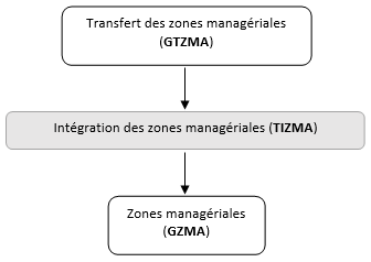 - du bouton "Transfert". Celui-ci permet d'intégrer une à une les zones managériales dans GZMA.
