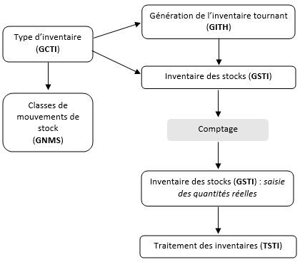Ce traitement permet de valider les inventaires, de mettre à jour les stocks ainsi que les prix et de générer un mouvement de régularisation avec en quantité la différence entre la quantité réelle et la quantité théorique de l'inventaire (GSTI).