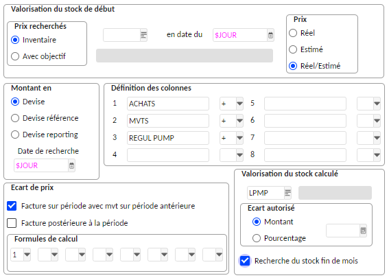 Cette gestion permet d'avoir la quantité et le montant identiques à l'inventaire de clôture. Elle est alimentée lors de l'initialisation par l'inventaire de départ et lors du calcul du PUMP (traitement TPUM).
