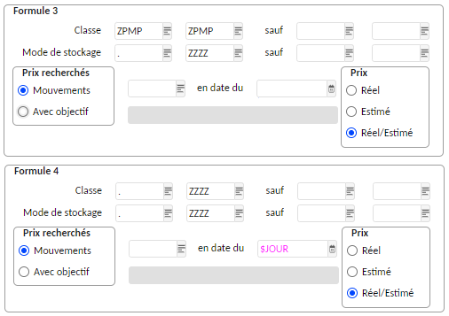 - PUMP instantané : tous les mouvements influent sur la variation du PUMP aussi bien les mouvements d'entrée que les mouvements de sorties. Les mouvements seront transférés en comptabilité avec le prix lu ou saisi lors de la création du mouvement.
