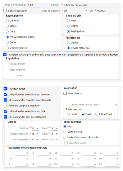 · un type de transfert pour les Entrées Achats valorisées au prix réel ou prix estimé.