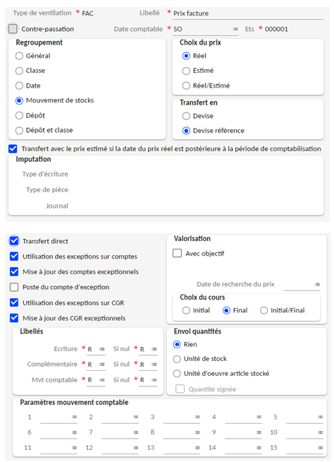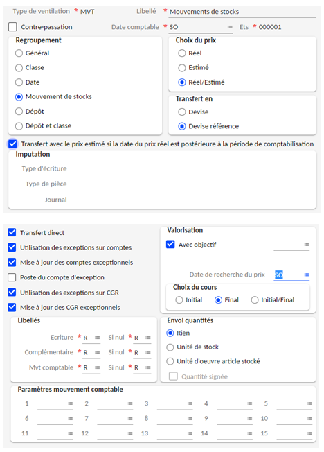 Pour les 3 types de transfert : il est conseillé de générer une écriture par mouvement (regroupement mouvements) pour avoir le maximum de détails.