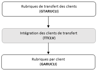 - du bouton transfert. Celui-ci permet d'intégrer une à une les rubriques par client dans GARUCLI.