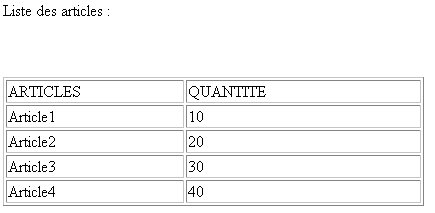 Dans cet exemple, nous avons une requête qui ramène 5 articles, avec une quantité associée. La colonne article a comme alias $ARTICLE dans GTUCOL, et la colonne quantité a comme alias $QTE.