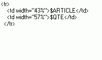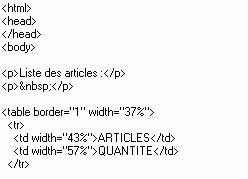 Comme cette forme ne contient pas d'alias, elle ne sera prise en compte qu'une seule fois. Donc, dans cette forme, nous précisons uniquement que le fichier sera en HTML, nous définissons le début d'un tableau, avec les en-têtes des colonnes.