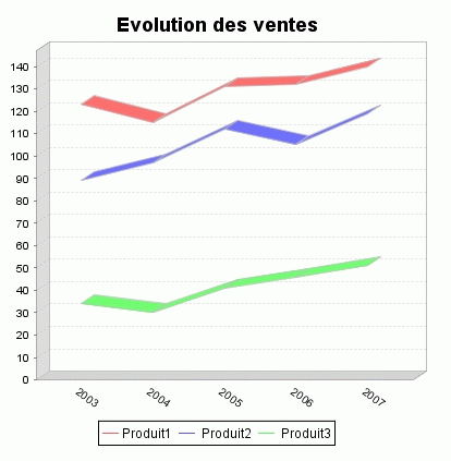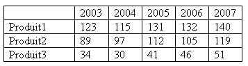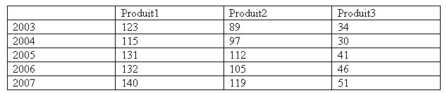 Imaginons un tableau représentant l'évolution des ventes de produit1, de produit2 et de produit3 sur les 5 dernières années :