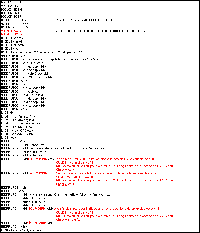 - Utilisation de cumuls dans une mise en forme gérant les ruptures