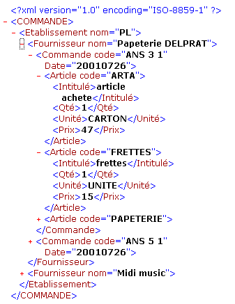 - Structure générale d'un fichier XML