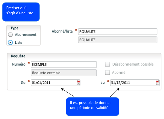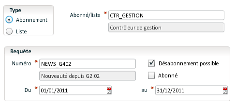 - Utilisateurs / Gestionnaires dans les abonnements et liste de diffusion