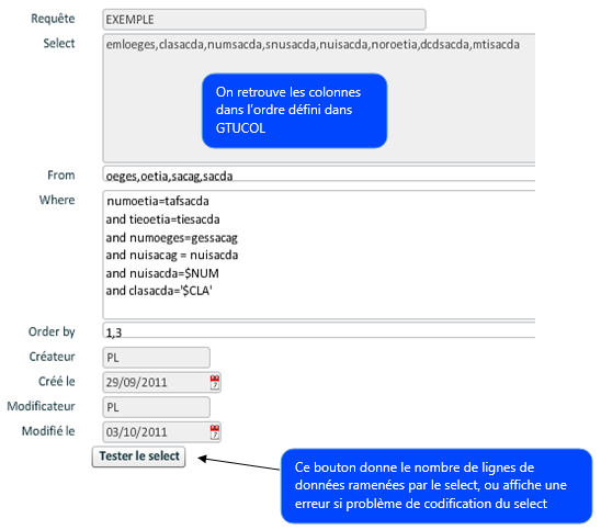 - GTUCOL : Définition des colonnes du select