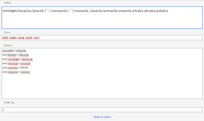 - GTUSEL : Définition des clauses du select