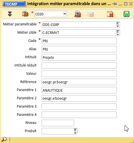 Nous allons intégrer le métier "Hiérarchie CGR (P)" de la façon suivante :