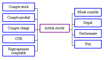 Informations : Article, Dépôt, Emplacement, Date de dernier inventaire, Nombre de jours entre 2 inventaires, Quantité minimale et maximale, Stock d'alarme, Délai de réapprovisionnement.